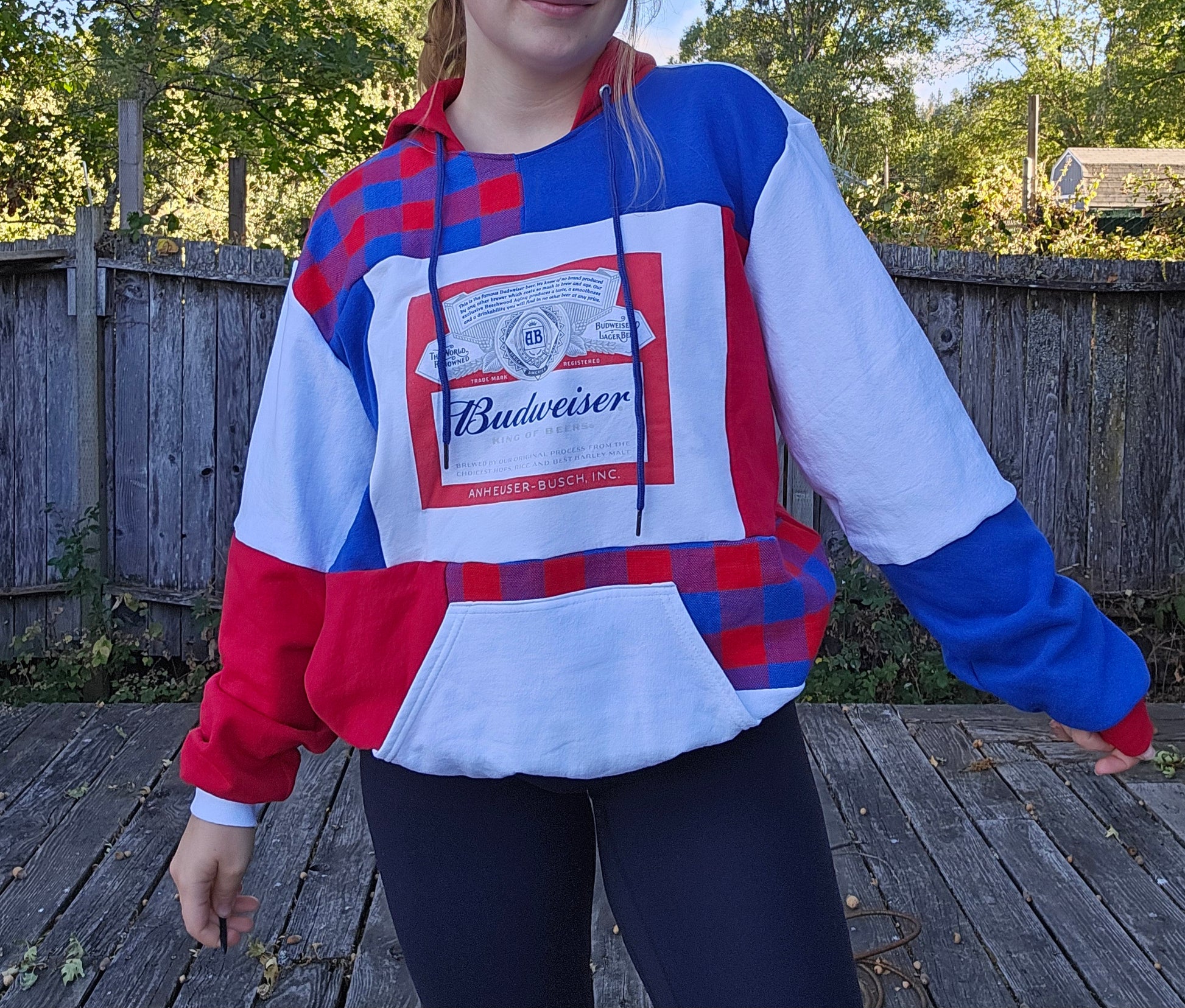 Made from secondhand materials. Please be aware that despite my best attempts to remove damaged areas (stains,holes,piling) from materials used, they may still persist.