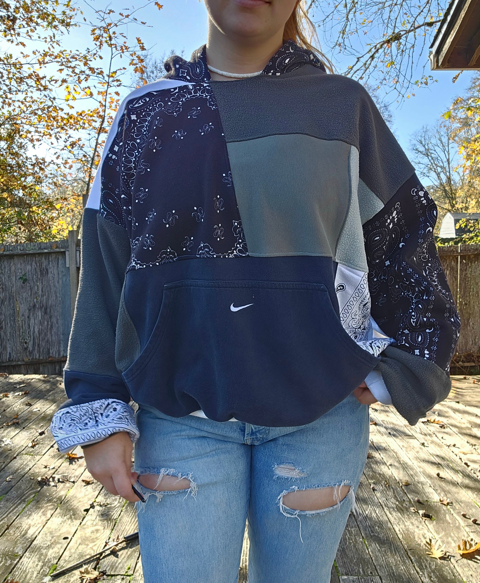 Made from secondhand materials. Please be aware that despite my best attempts to remove damaged areas (stains,holes,piling) from materials used, they may still persist.