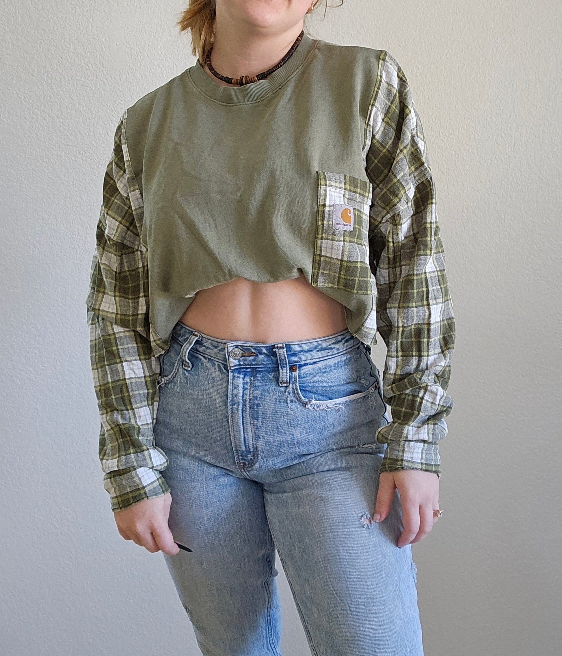 Made from secondhand materials. Please be aware that despite my best attempts to remove damaged areas (stains,holes,piling) from materials used, they may still persist.