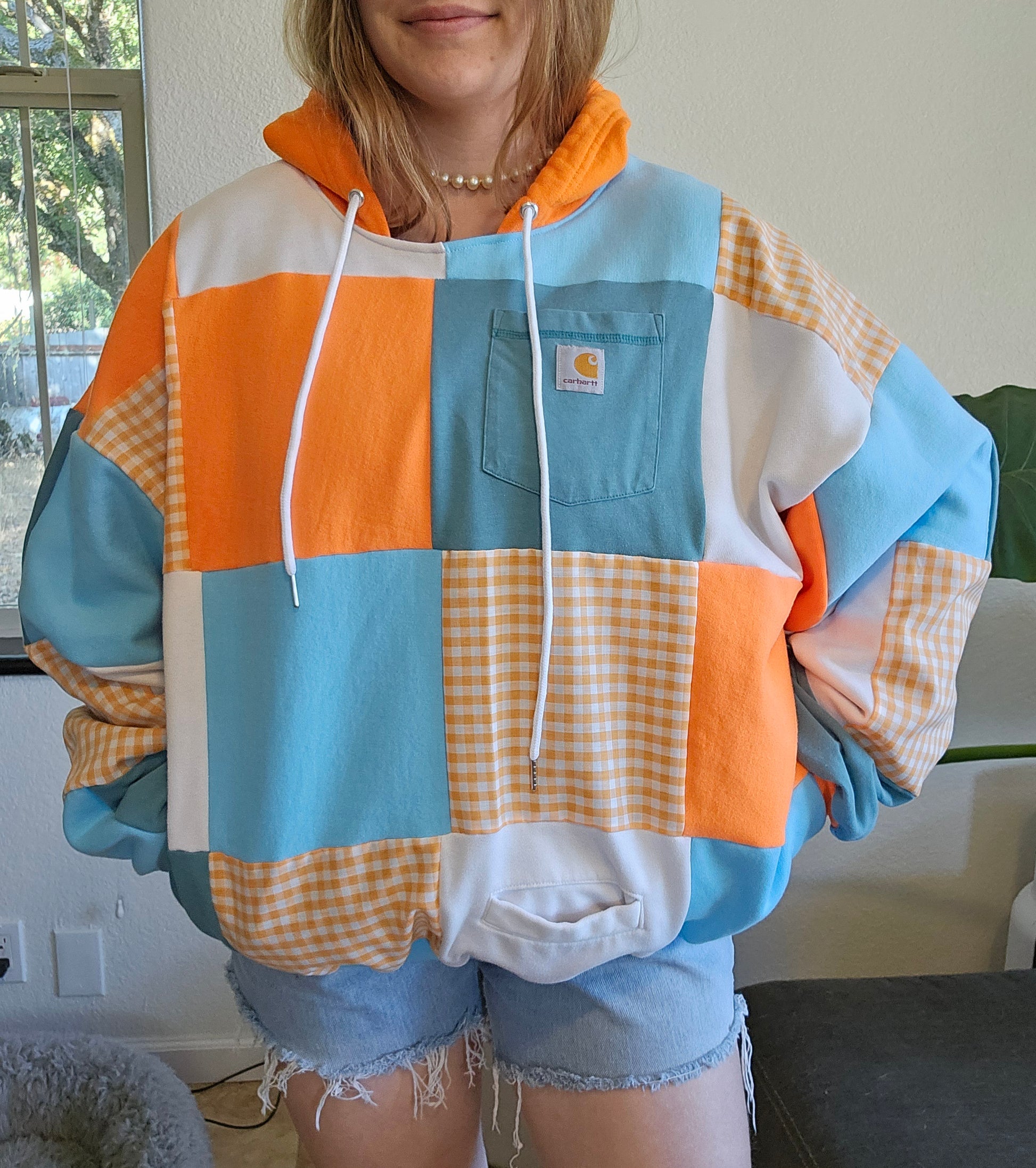 Made from secondhand materials. Please be aware that despite my best attempts to remove damaged areas (stains,holes,piling) from materials used, they may still persist.