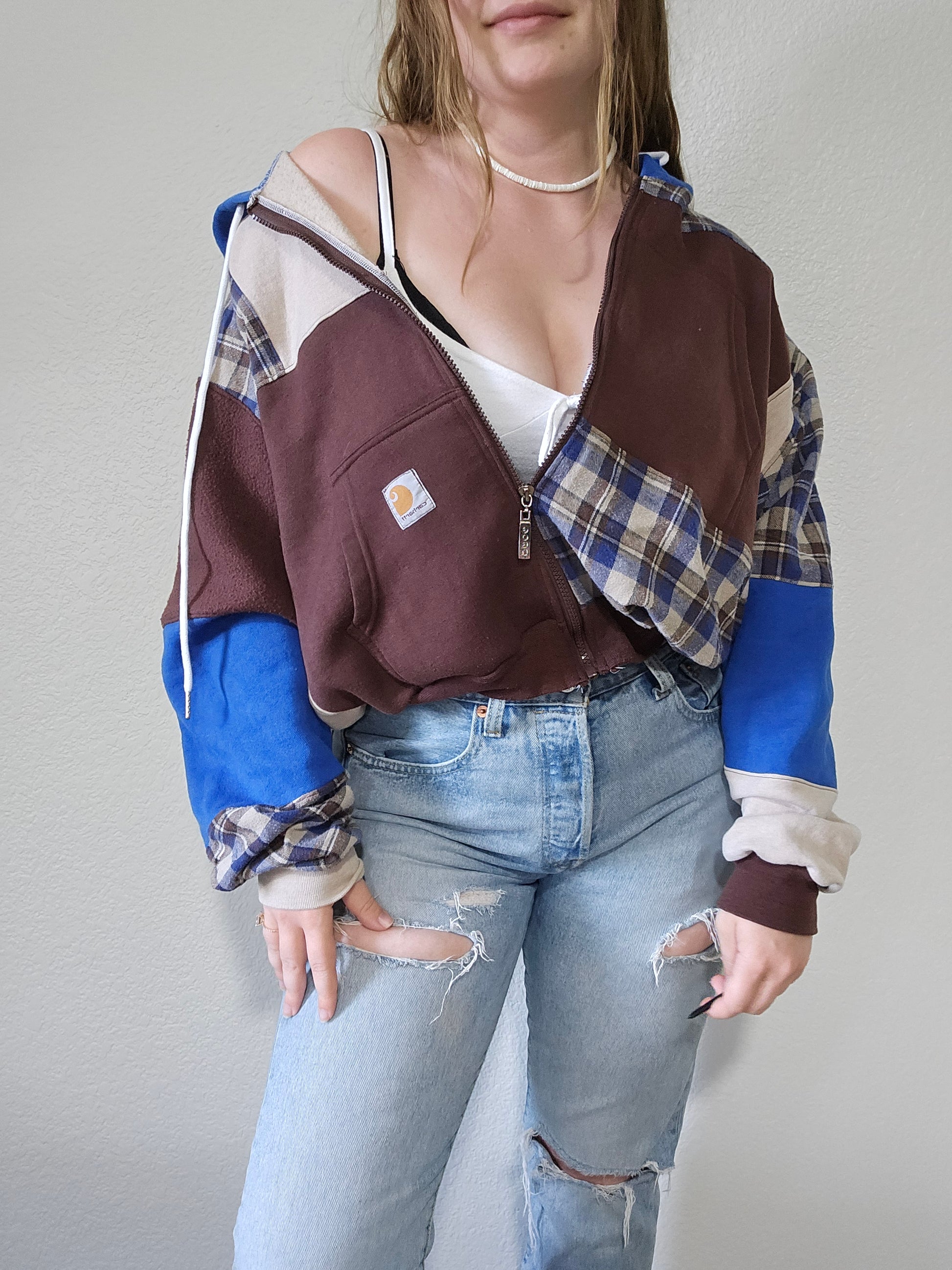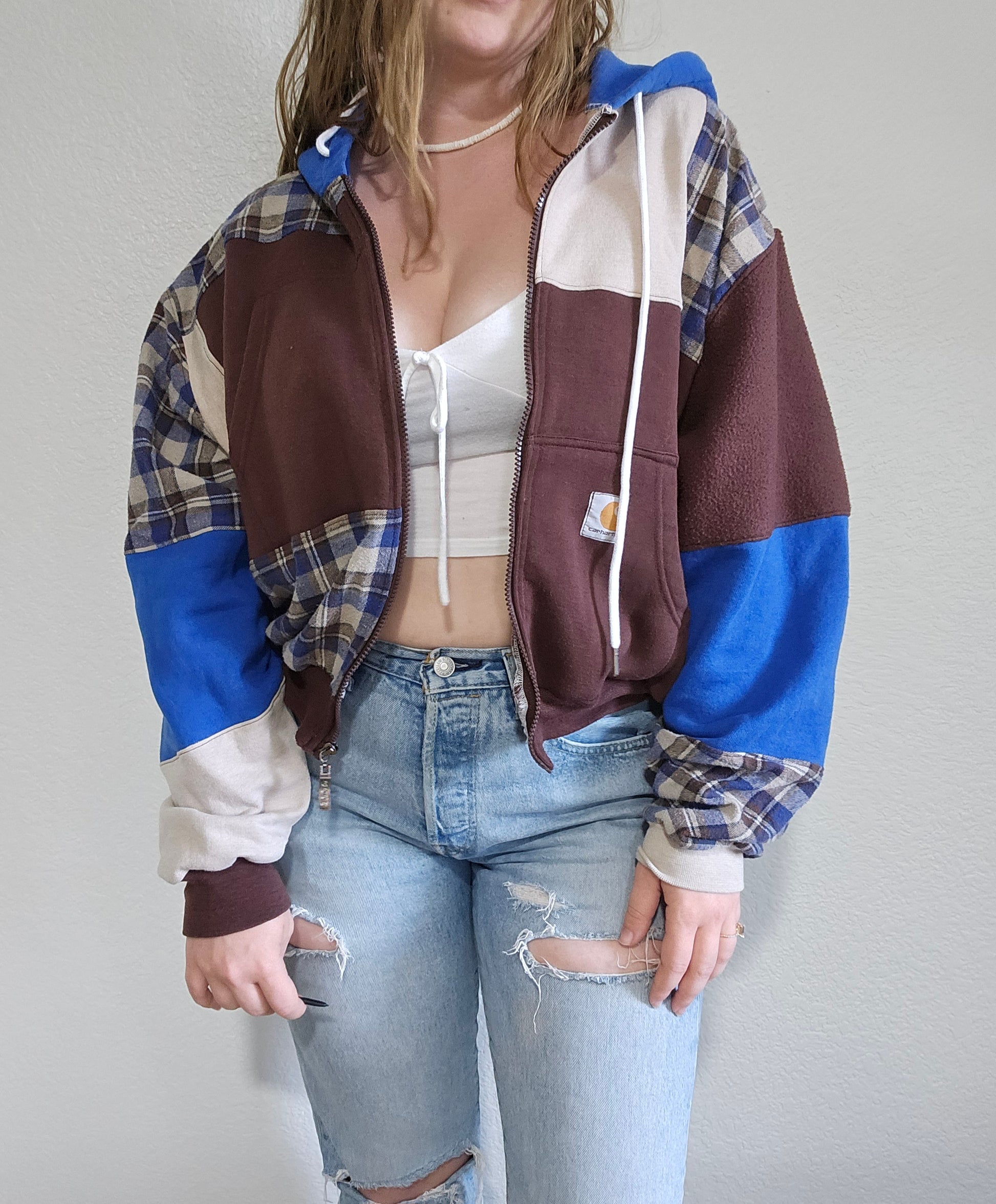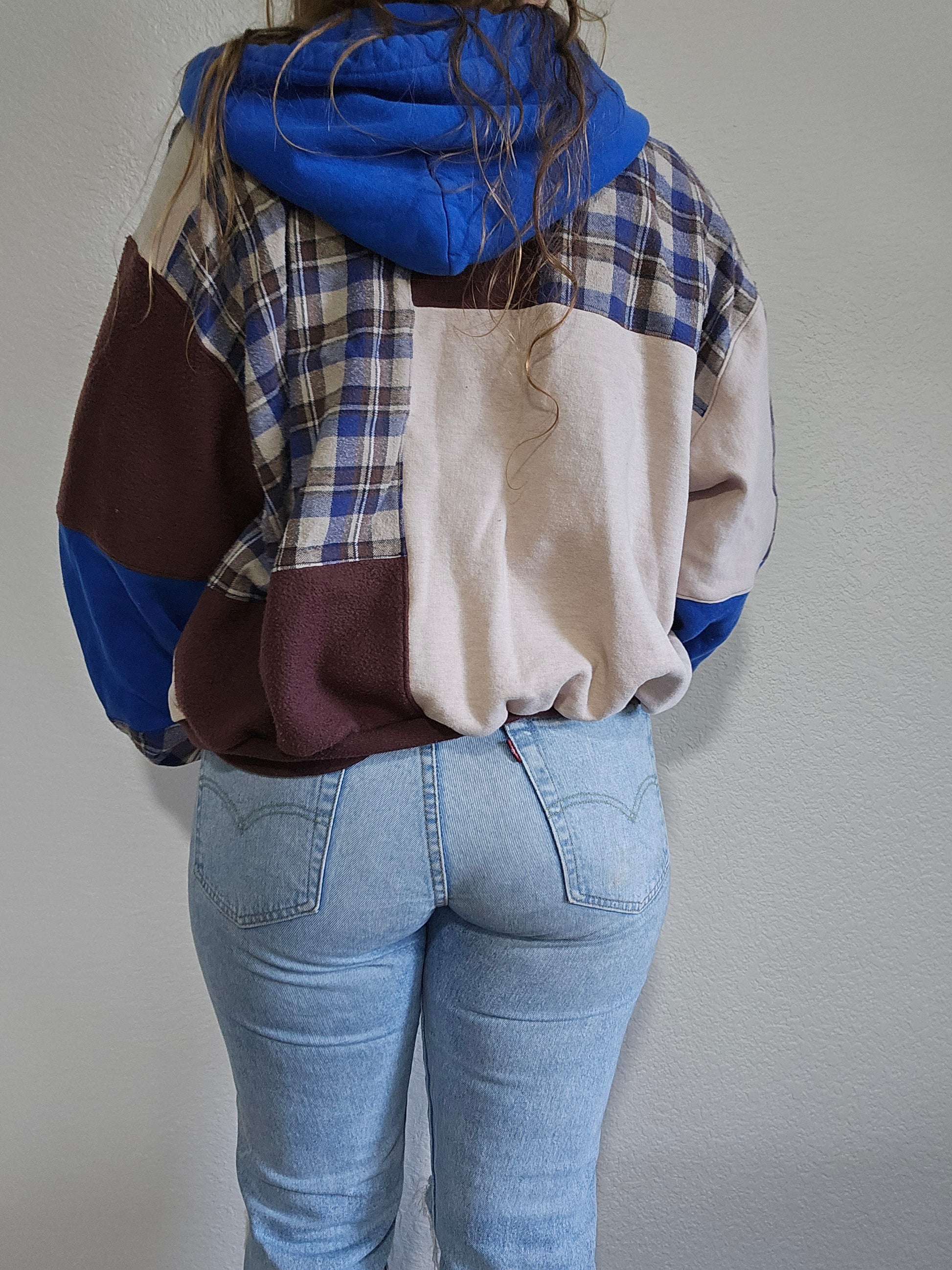 Made from secondhand materials. Please be aware that despite my best attempts to remove damaged areas (stains,holes,piling) from materials used, they may still persist.