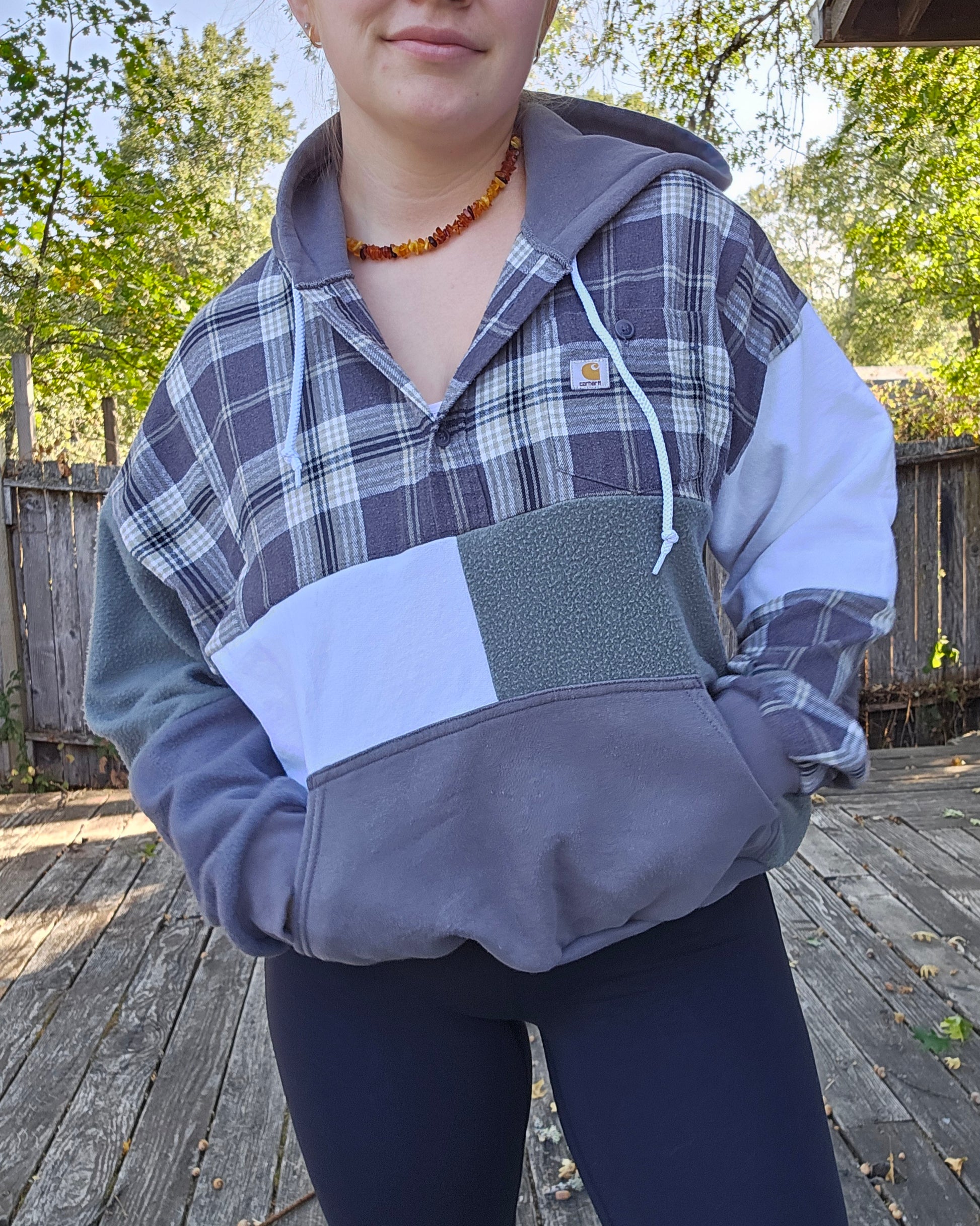 Made from secondhand materials. Please be aware that despite my best attempts to remove damaged areas (stains,holes,piling) from materials used, they may still persist.