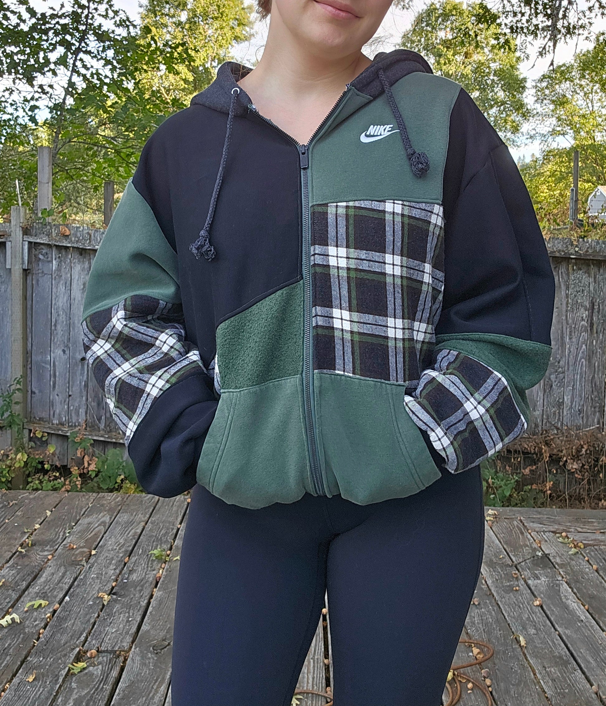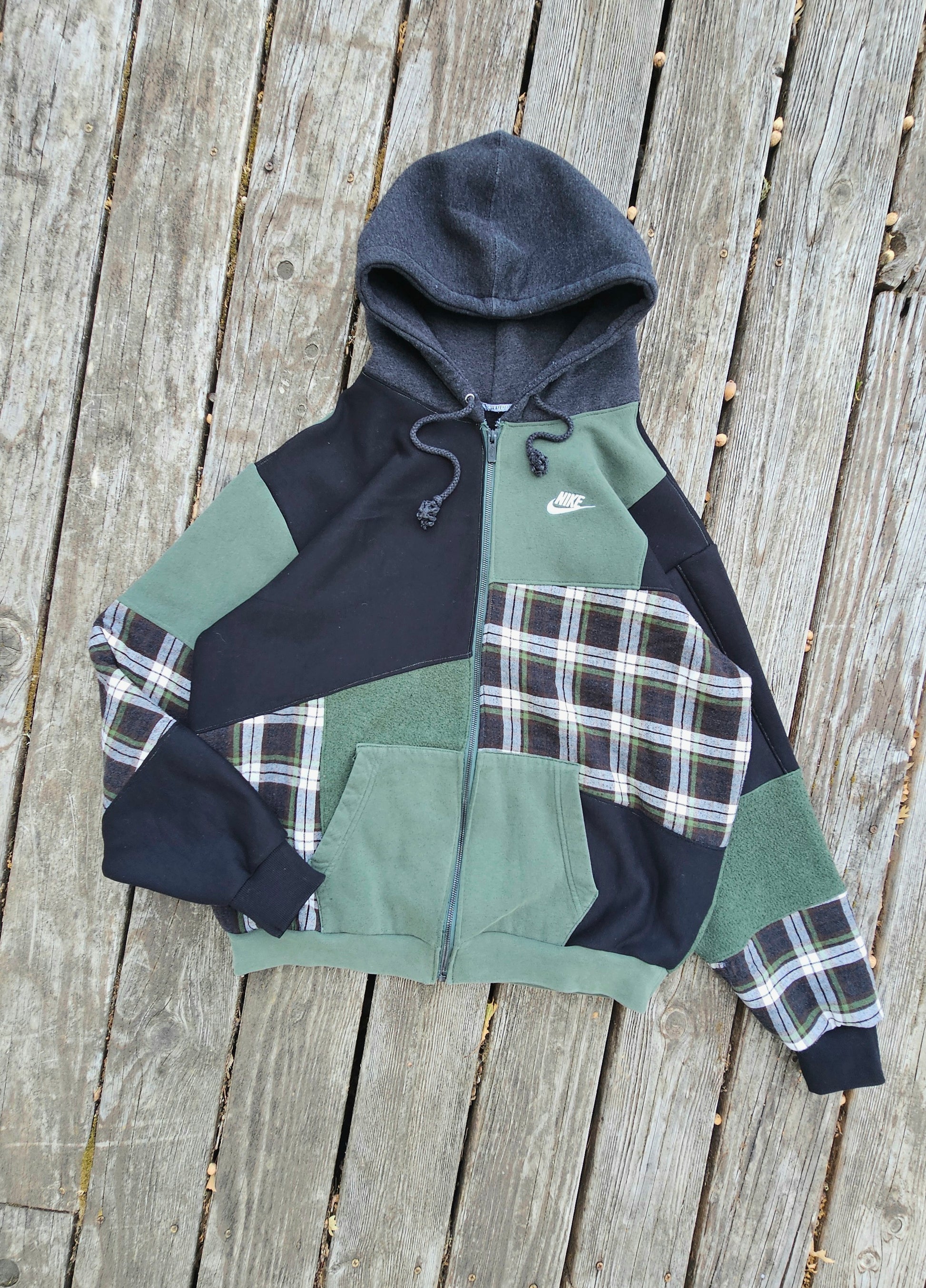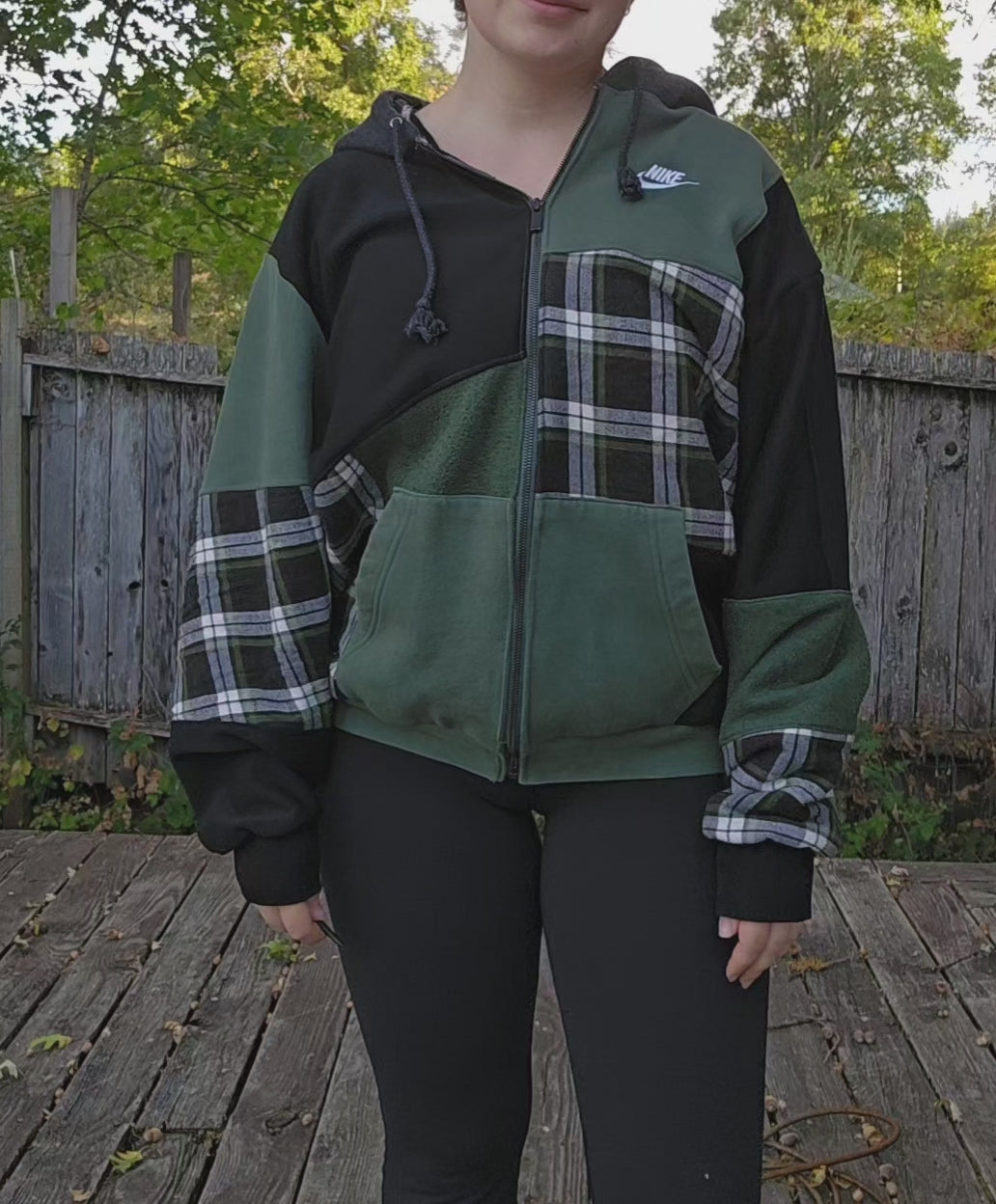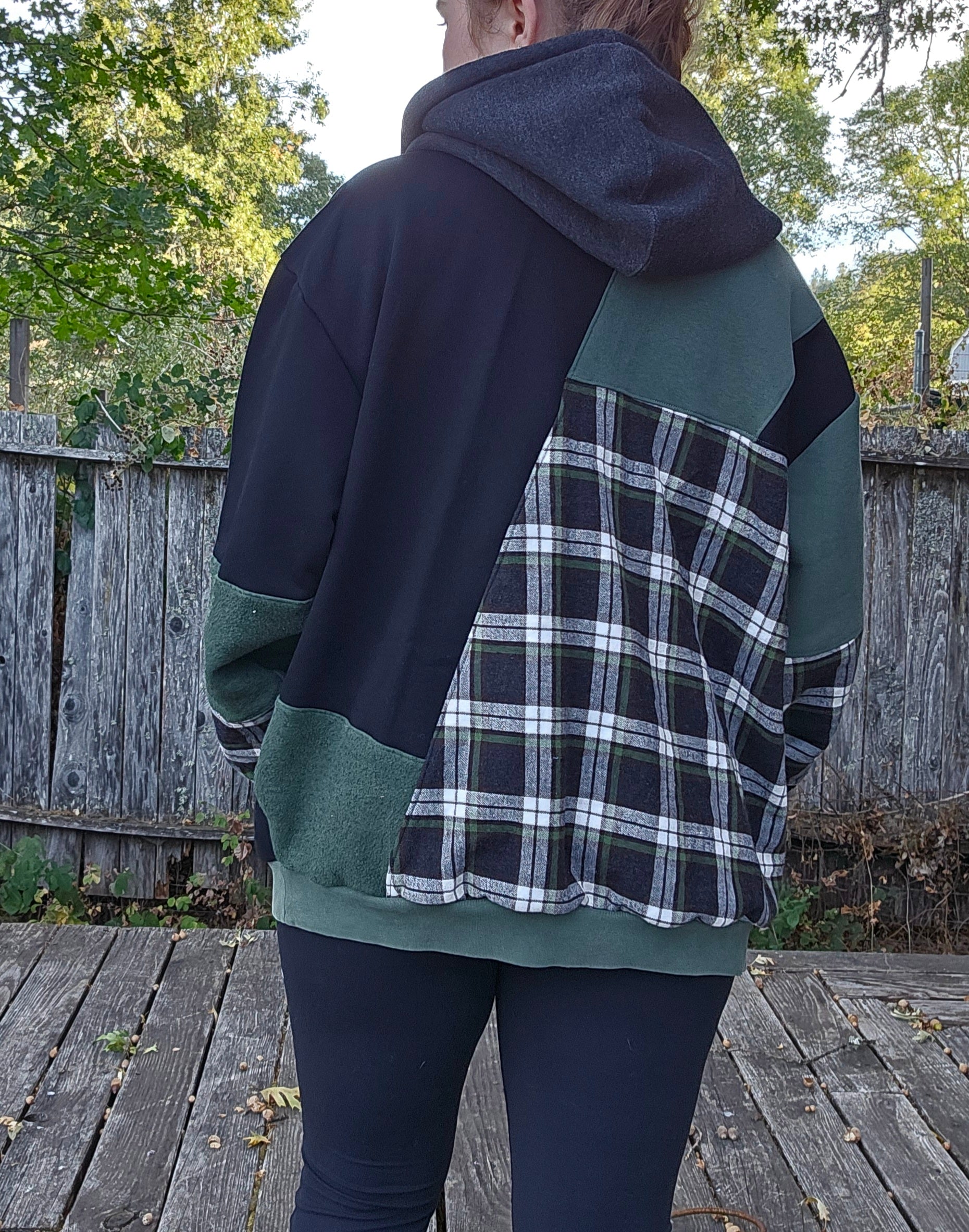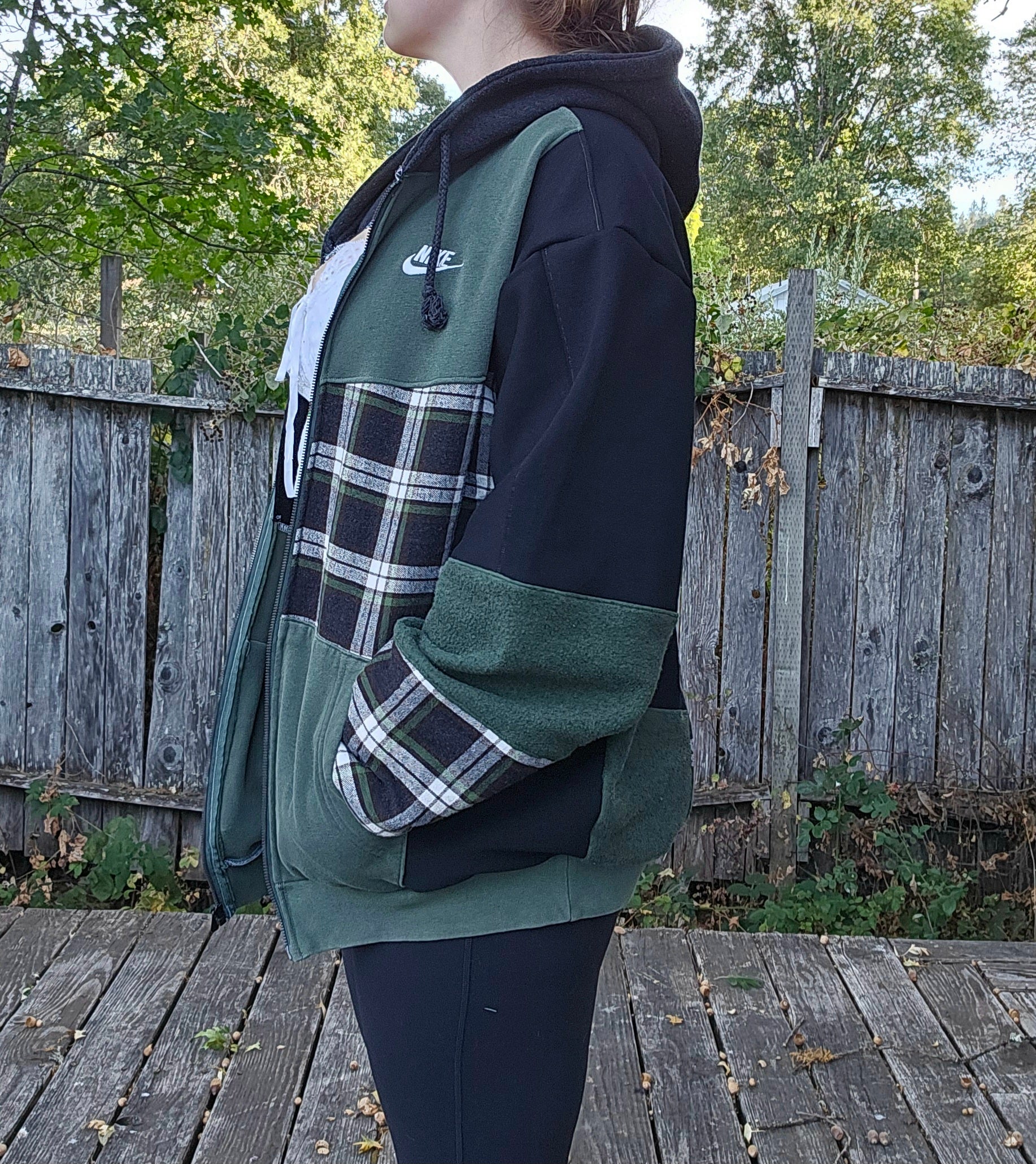 Made from secondhand materials. Please be aware that despite my best attempts to remove damaged areas (stains,holes,piling) from materials used, they may still persist.